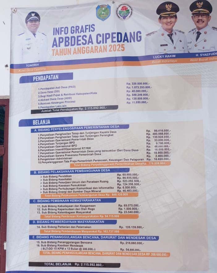 Aksi aspirasi tersebut dilandasi oleh informasi publik yang sebelumnya dipublikasikan Pemerintah Desa Cipedang melalui infografis Anggaran Pendapatan dan Belanja Desa (APBDesa) Tahun Anggaran 2025. Dari data itulah, masyarakat mulai mencermati dan mengajukan pertanyaan-pertanyaan kritis.