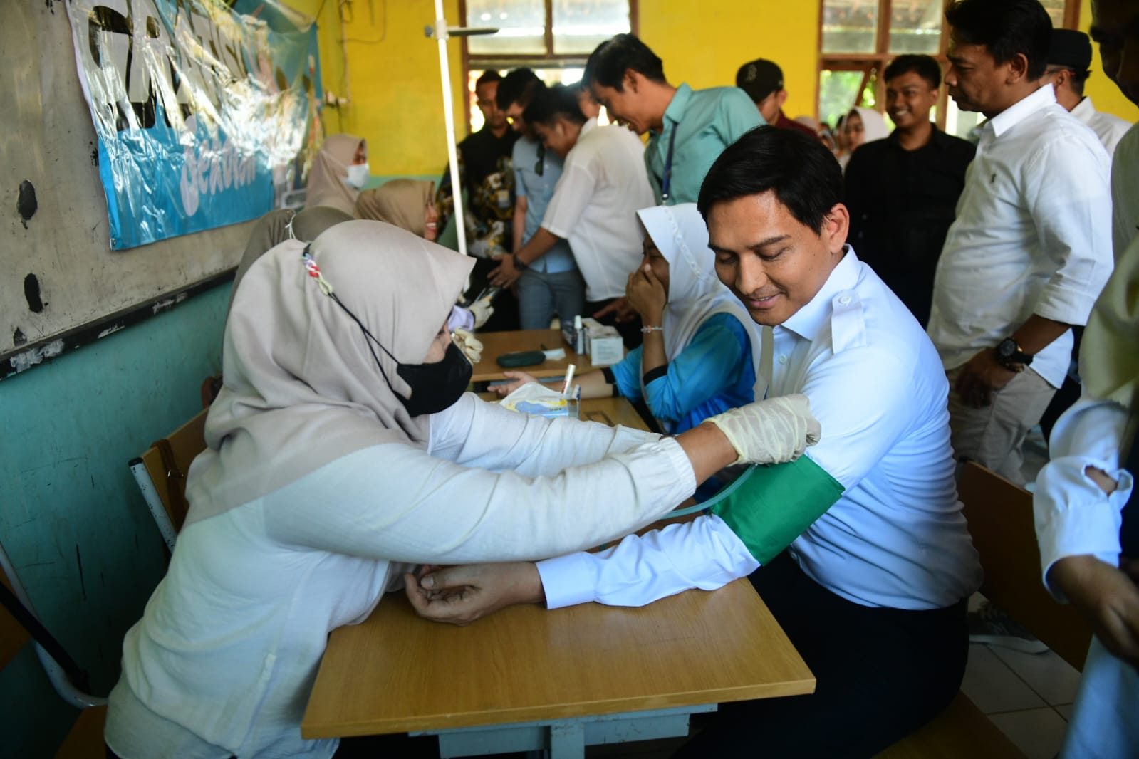 Bupati Indramayu, Lucky Hakim, hadir langsung mendampingi kegiatan sekaligus ikut menjalani pemeriksaan tensi darah bersama para siswa.