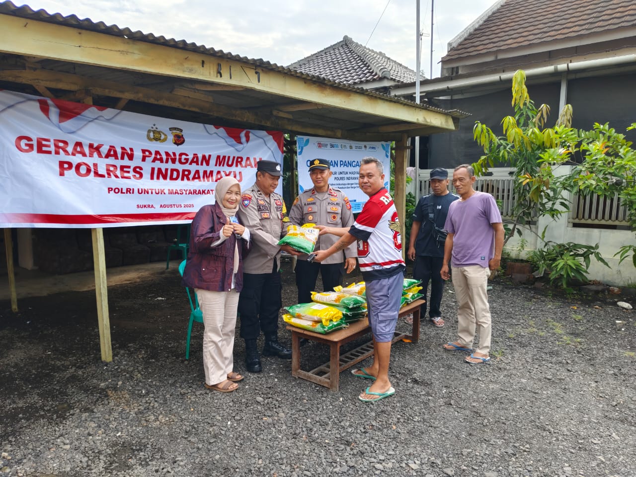 Polsek Sukra, Polres Indramayu, menggelar Gerakan Pangan Murah untuk menstabilkan harga dan menjaga ketahanan pangan di wilayahnya. Kegiatan ini berlangsung di halaman kantor Polsek Sukra, Kamis (14/8/2025), dengan menyalurkan 1 ton beras medium SPHP.