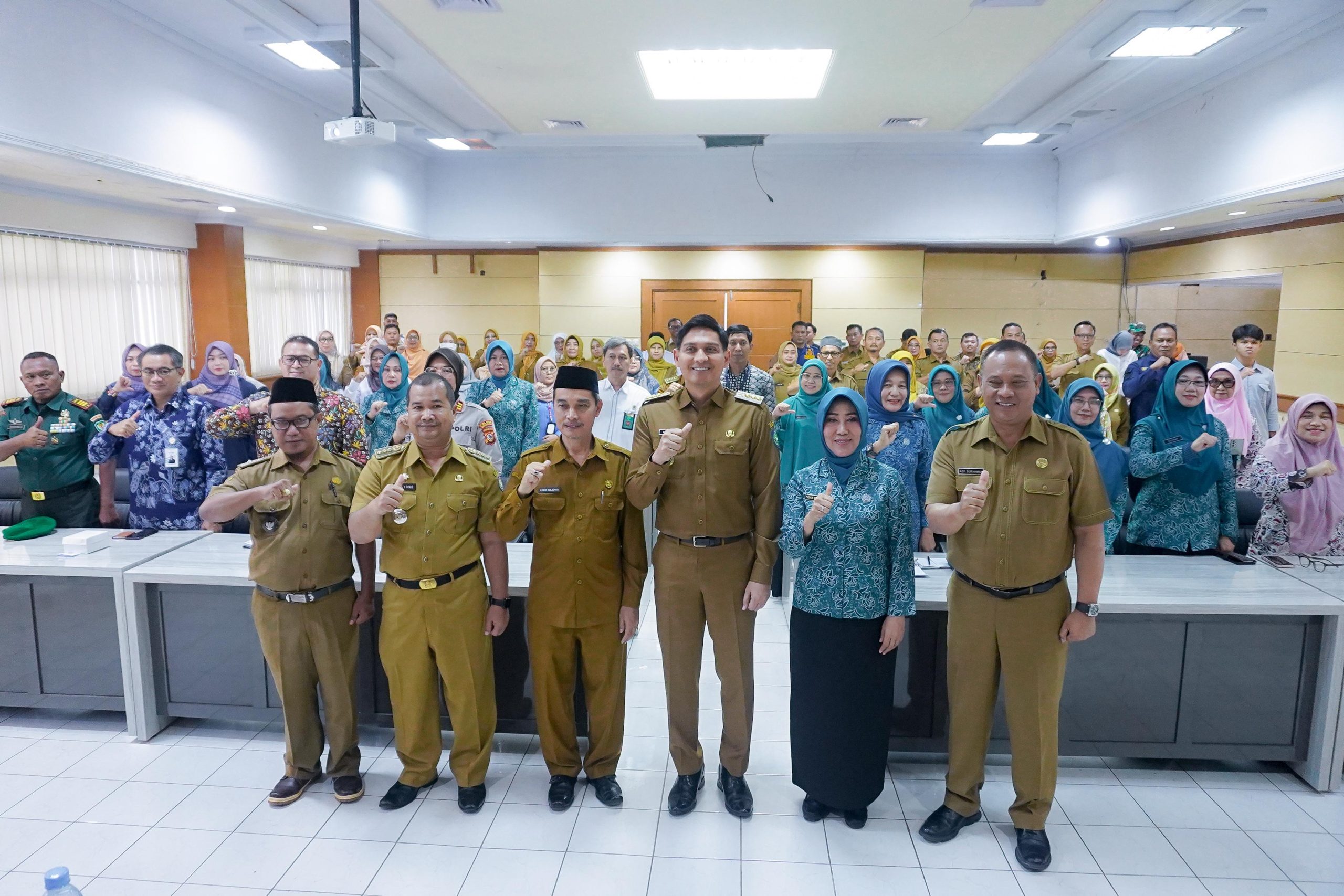 Bupati Indramayu Lucky Hakim, bersama jajaran Forum Koordinasi Pimpinan Daerah (Forkopimda), perangkat daerah terkait, serta para pemangku kepentingan lainnya, mengikuti kegiatan ini secara daring dari Ruang Ki Tinggil, Sekretariat Daerah Kabupaten Indramayu.