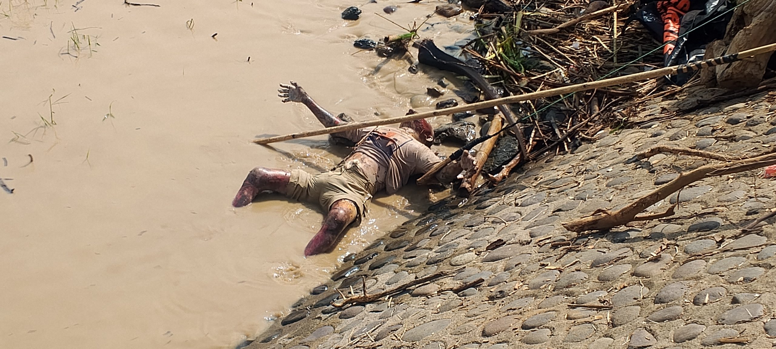 Kondisi jasad ditemukan mengenaskan, telentang kaku dan bercampur tumpukan sampah, serta kulit dan wajah yang nyaris terkelupas, mengindikasikan bahwa korban telah berada di air selama beberapa waktu.