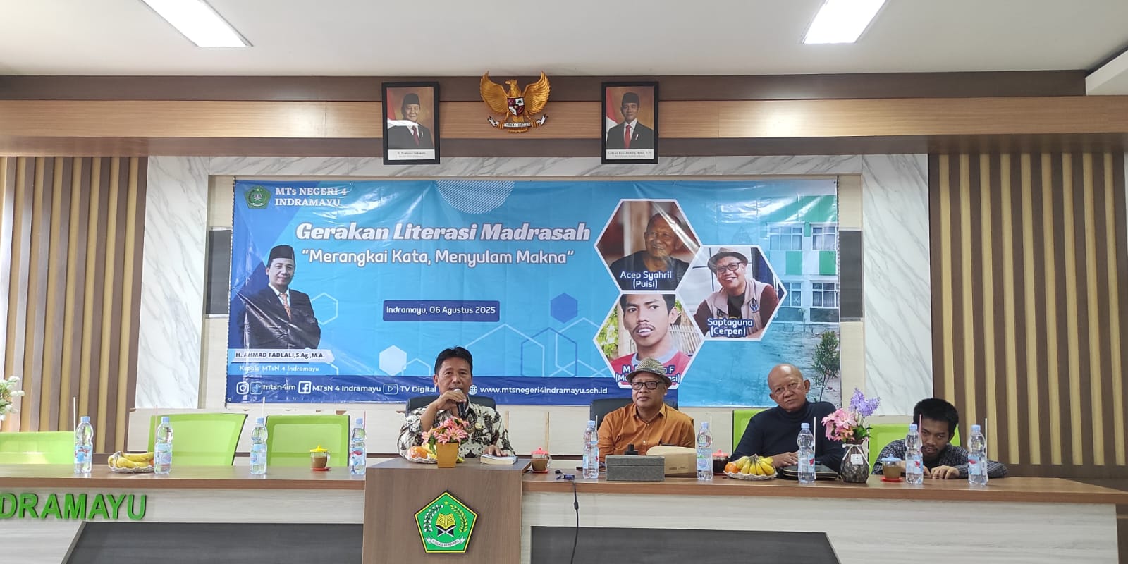 Madrasah Tsanawiyah Negeri (MTsN) 4 Indramayu menggelar kegiatan Gerakan Literasi Madrasah dengan mengangkat tema “Merangkai Kata, Menyulam Makna” pada Rabu, 6 Agustus 2025. Kegiatan ini diikuti 200 siswa dan siswi yang tampak antusias mengikuti setiap sesi.