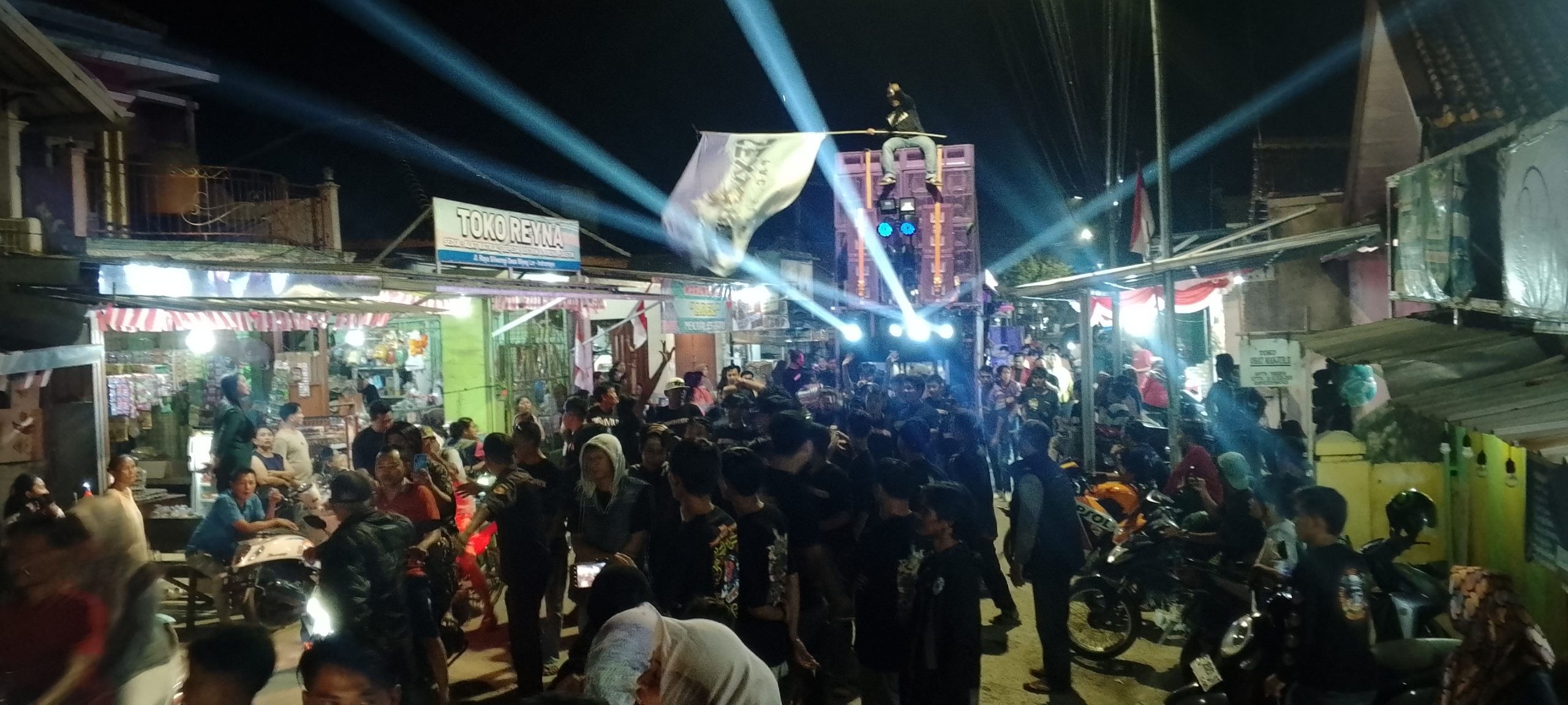 Sepanjang jalan desa, kemeriahan arak-arakan menciptakan lautan manusia yang antusias. Musik yang menghentak dan tata cahaya spektakuler menambah semarak suasana, membuat perayaan HUT RI ke-80 kali ini menjadi salah satu yang paling berkesan.