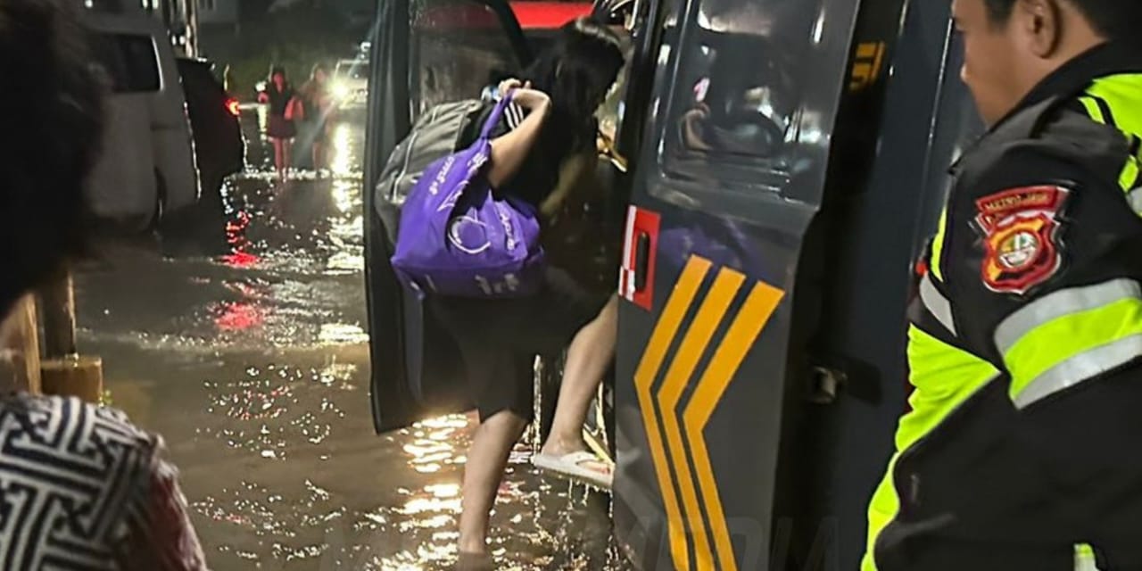 Banjir yang melanda beberapa wilayah di Serpong Utara membuat sejumlah warga kesulitan beraktivitas. Menanggapi kondisi ini, personel Polri segera diterjunkan untuk memberikan bantuan. Terlihat beberapa anggota bahu-membahu mengevakuasi warga dari rumah mereka yang terendam air.
